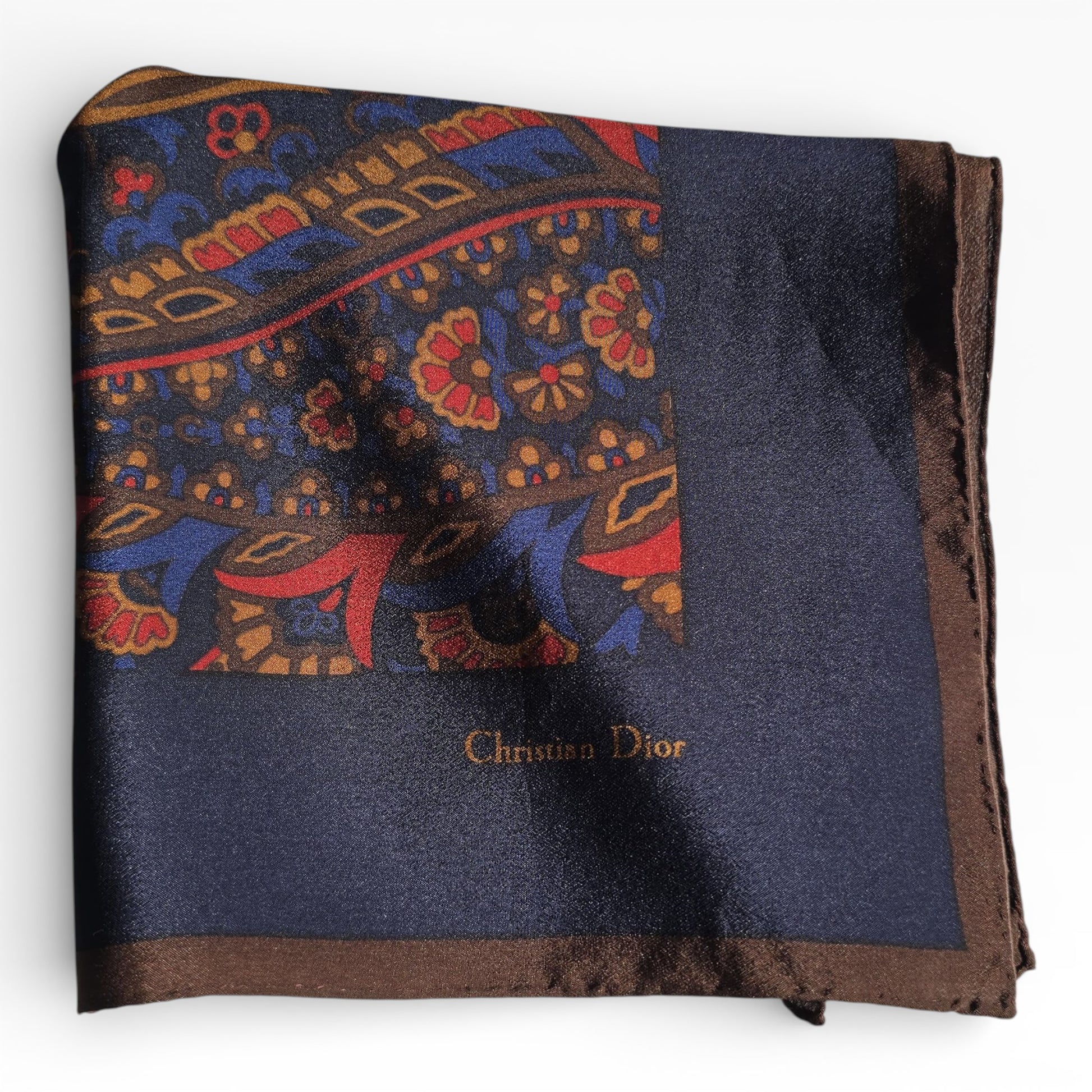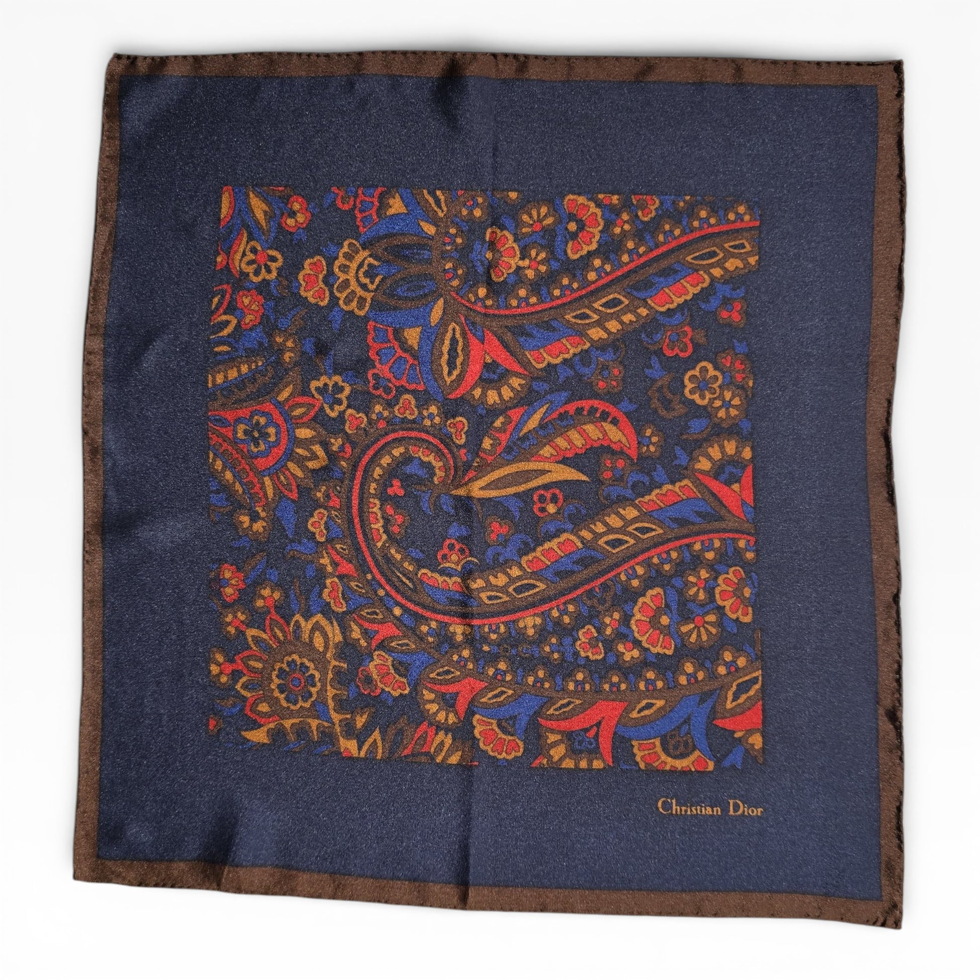 Christian Dior Vintage Silk Pocket Square – Navy Paisley, Made in France