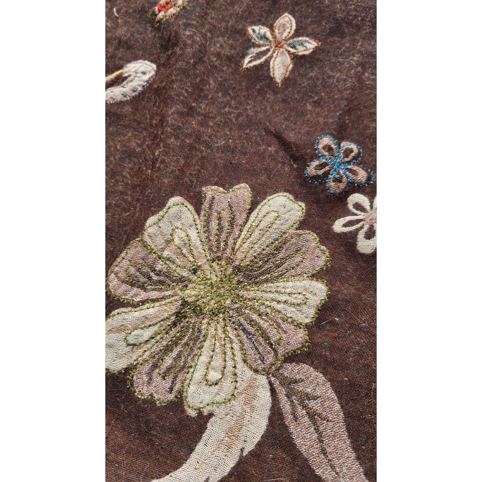 This shawl is a true example of skilled Indian textile artistry, blending traditional hand embroidery with contemporary flair.