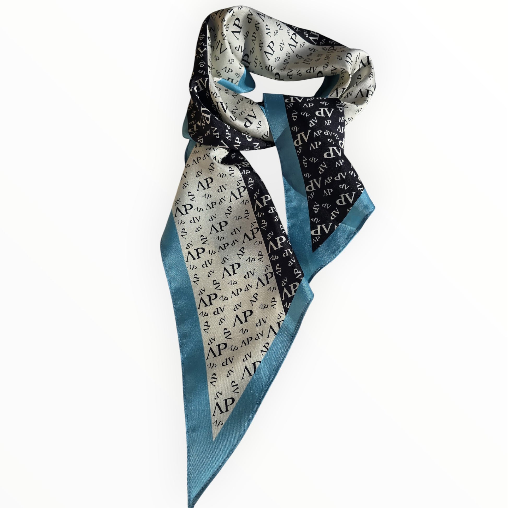 Vintage Avant-Première Silk Scarf Blue Black White Logo Pattern 100% Silk 1980s