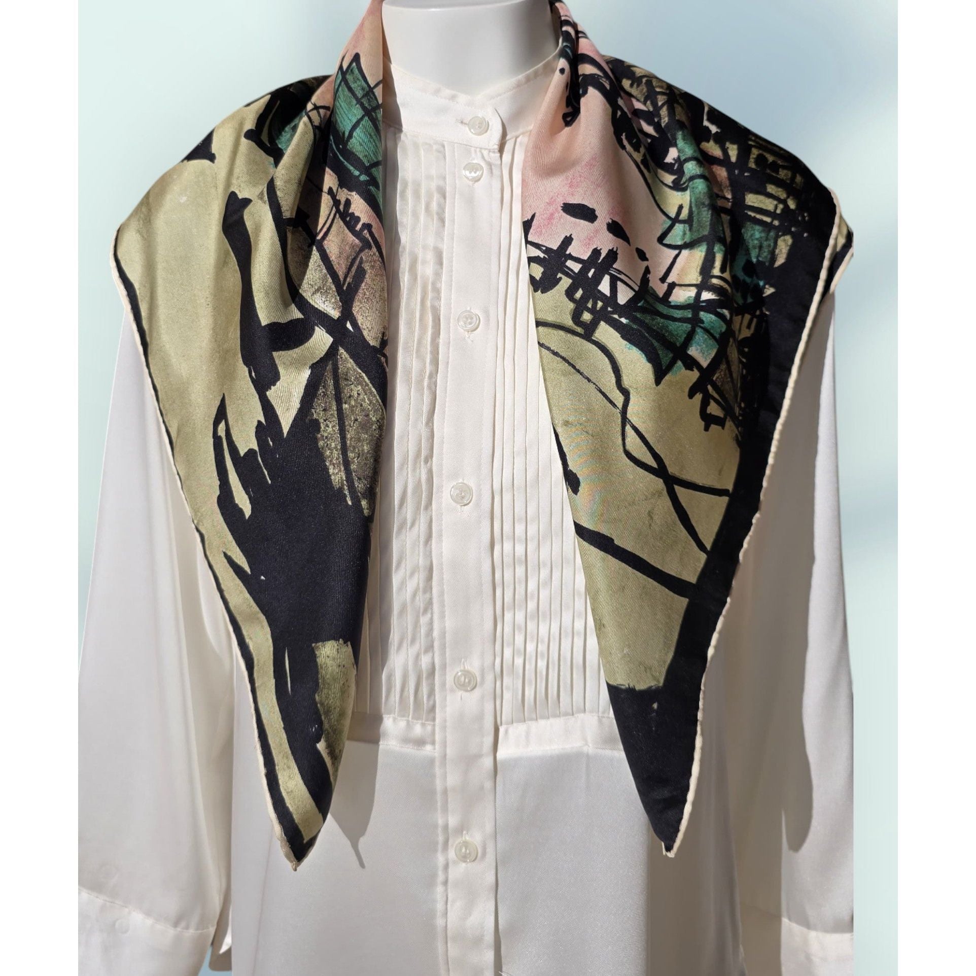 Bring French sophistication to your wardrobe with this striking vintage silk scarf by iconic Parisian designer Maggy Rouff.
